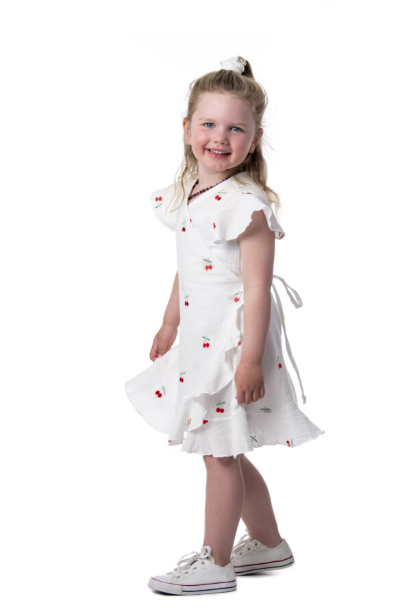 Naaipatroon jurk met ruches, inclusief duidelijke werkbeschrijving. Deze jurk met ruches is te maken met korte mouw of met een lange mouw. En ook als mini me patroon verkrijgbaar in de webshop.